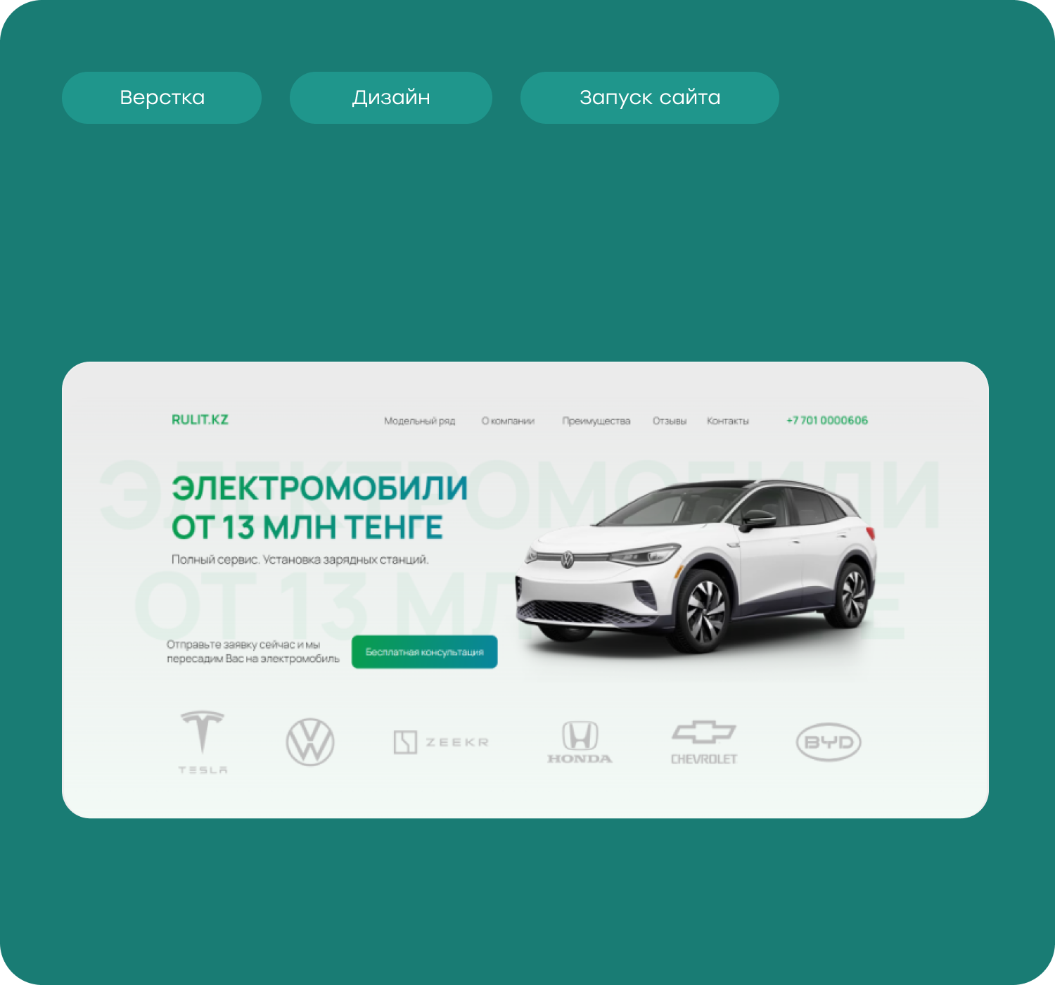 Landing page для крупного дистрибьютора электрокаров в Казахстане Rulit